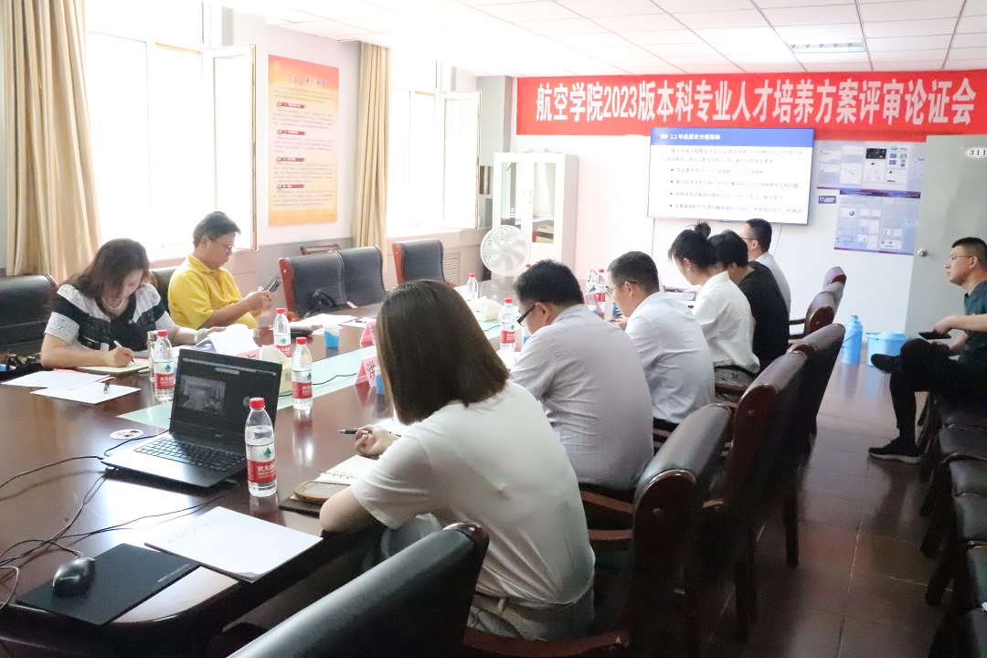 7月6日下午,航空学院召开2023版本科专业人才培养方案评审论证会。为严把方案质量,特邀中国民航大学原校长、教育部高等学校交通运输类专业教学指导委员会副主任委员董健康教授,教育部高等学校航空航天类专业教学指导委员会委员、南京航空航天大学陈仁良教授分别担任交通运输和飞行器设计与工程专业专家组组长,组员包括西安航空学院民航学院副院长卢娜副教授、中国商飞学苑产业合作培训部部长、鄂尔多斯应用技术学院大飞机学院副院长高峰高级工程师,西安航空学院教务处教研科科长侯伟副教授,中国航天科工集团第六研究院41所王浩然高级工程师、专业负责人、学科带头人和专任教师代表。教务处副处长洪海龙、学院党委书记郭凌峰、院长郭俊宏教授以及全体教师参加会议,会议由副院长毕俊喜教授主持。