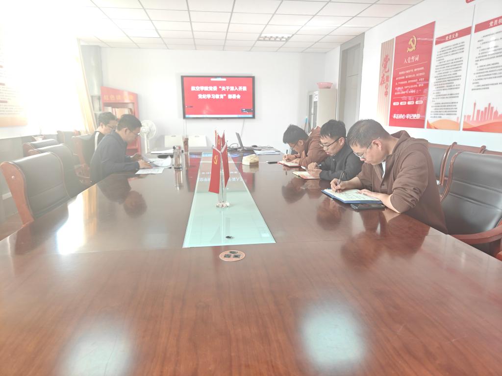 4月17日下午,航空学院召开“关于深入开展党纪学习教育”动员部署会。学院领导班子成员、教工党支部书记、学生党支部书记集体通过线上线下方式参加。会议由航空学院党委副书记、院长郭俊宏同志主持。