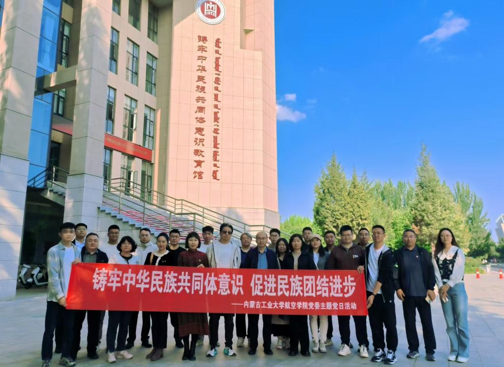 为深入学习贯彻习近平总书记关于加强和改进民族工作的重要思想,有形有感有效铸牢中华民族共同体意识,增强教师党员对中华民族的认同感和自豪感,推动“民族团结进步活动月”工作走深走实,9月26日,航空学院全体党员赴呼和浩特民族学院,开展参观铸牢中华民族共同体意识教育馆主题党日活动。