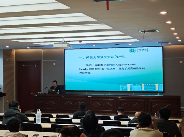 刘官厅教授结合自身科研与教学经历,系统回顾了复变方法在断裂力学中的发展历程。他介绍,自1909年俄国数学力学家哥洛索夫首次将复变方法引入二维弹性力学问题以来,该方法在弹性与断裂力学领域已历经百余年的发展,尤其在断裂力学中的应用成果显著。报告重点梳理了复变方法在经典断裂力学、复合材料断裂力学及新型材料断裂力学中的关键进展与实际应用,并简要展示了其课题组在该方向上的研究成果。